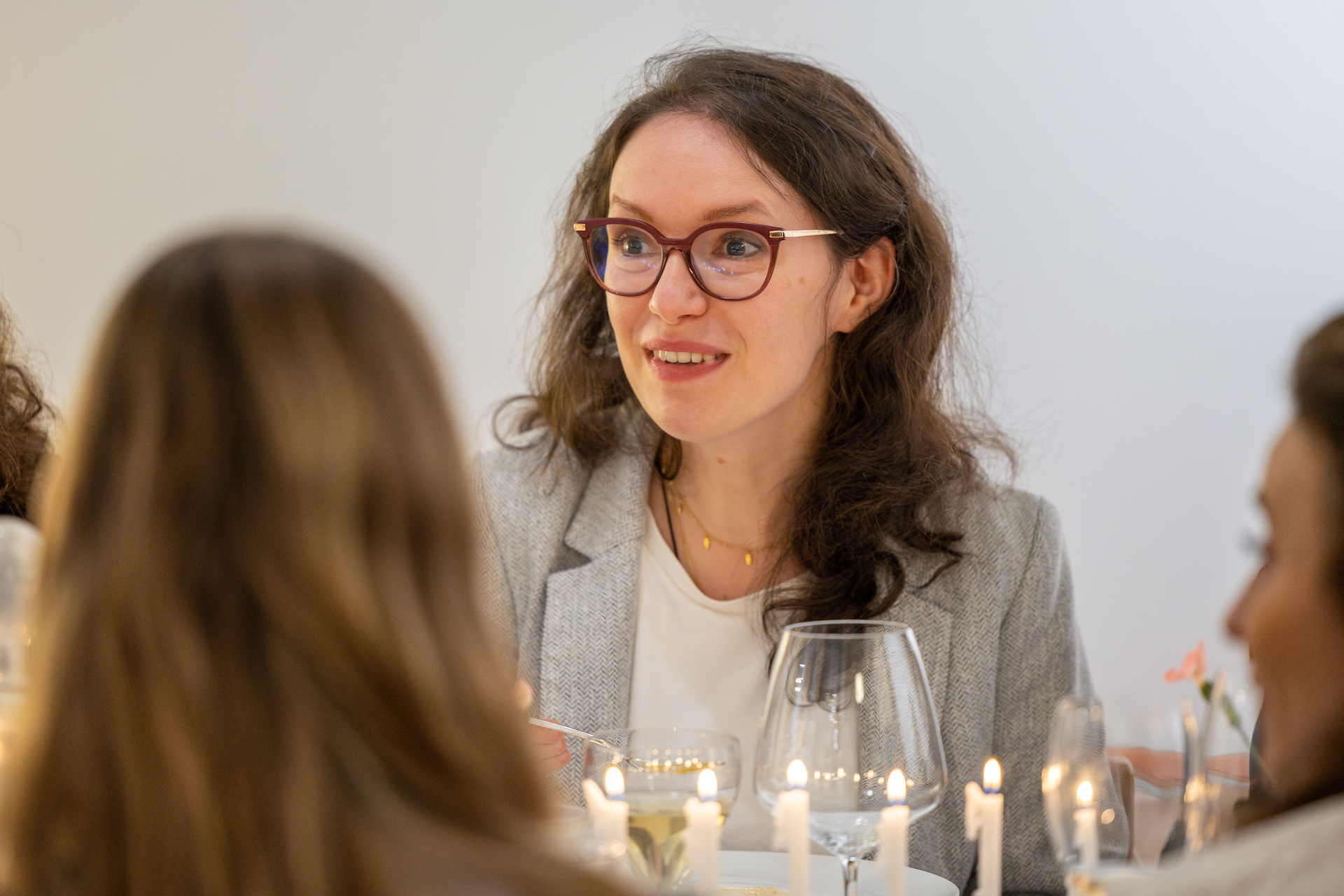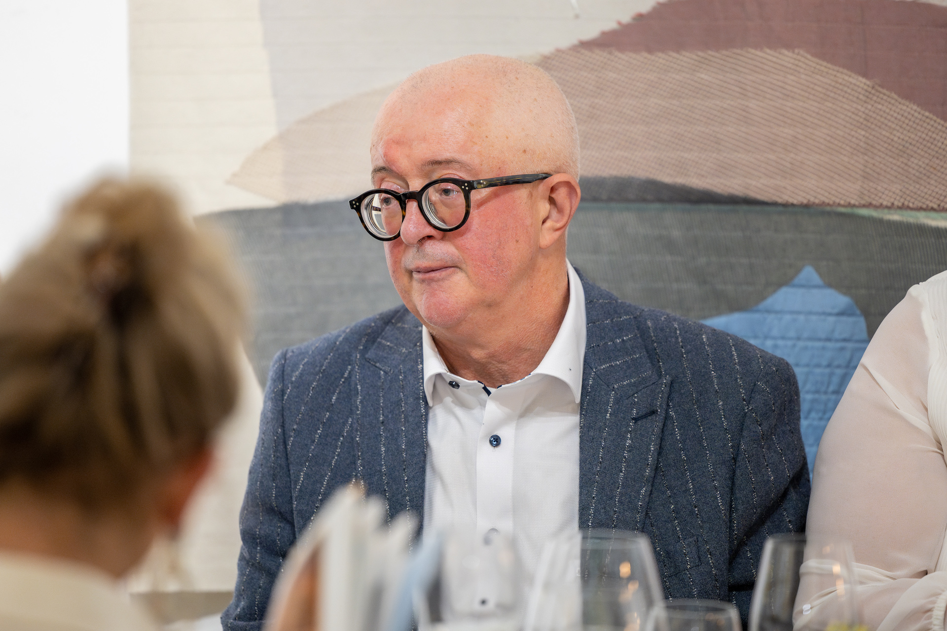 In an intimate setting, 34 guests had the pleasure of enjoying a meal prepared by young chef Charles Biwer, served in unique and handmade ceramic plates made by Cathy Deprez for Subtile and all inspired by the three colors that define the current exhibition, “Burst of Light.” featuring Glass Variation and La Gadoue.