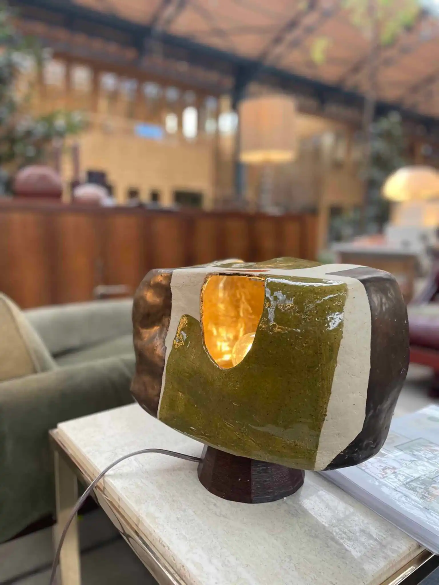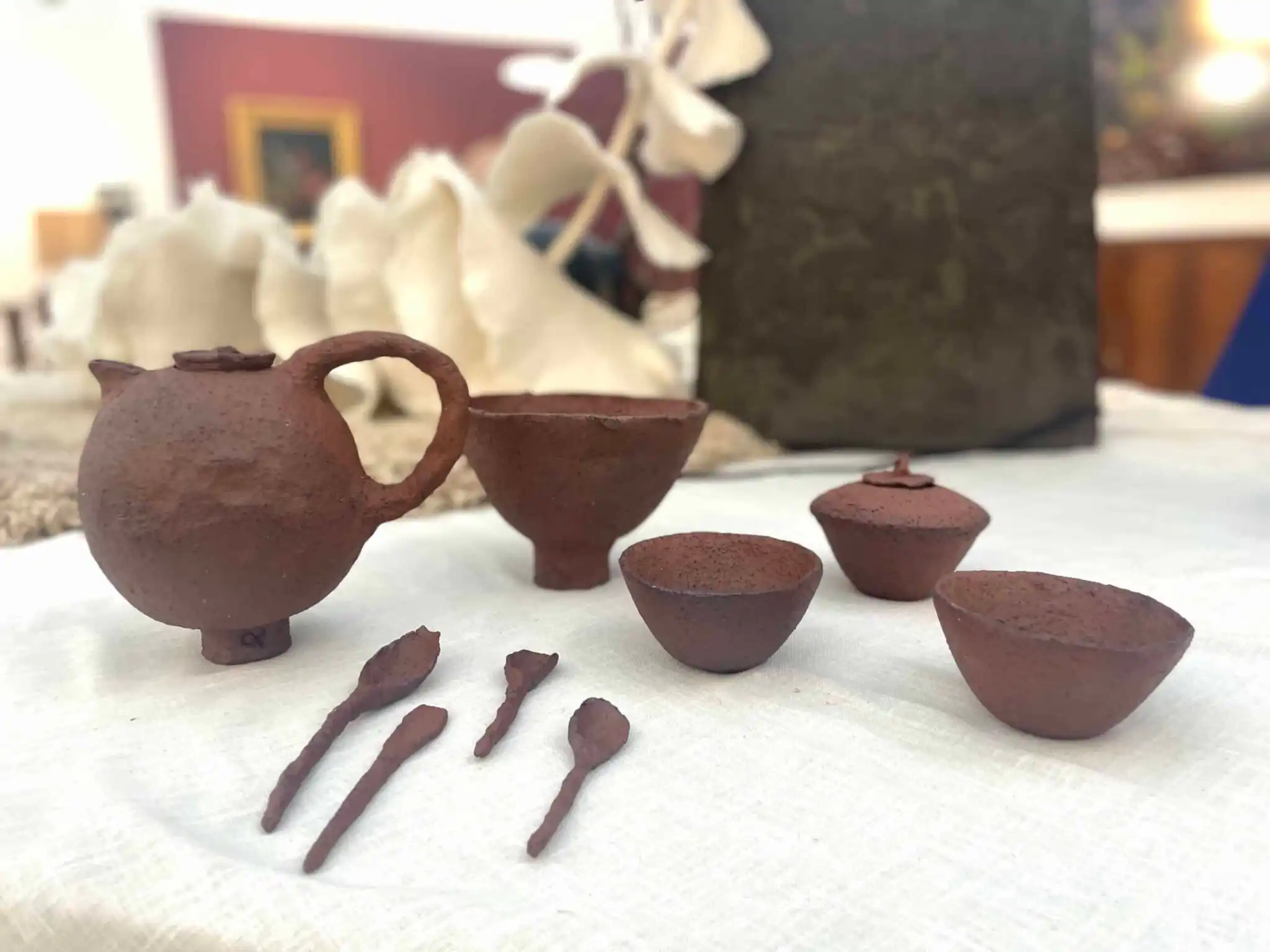 Cathy, initially visual artist, handles the art of clay with simplicity, delicacy and creativity. With her heart on her hand and her hand in the earth, she is a source of creativity. Nothing scares her and everything motivates her: lamps, credenzas, paintings, door handles, dishes, sculptures, trays, aperitif spoons, jewellery…
