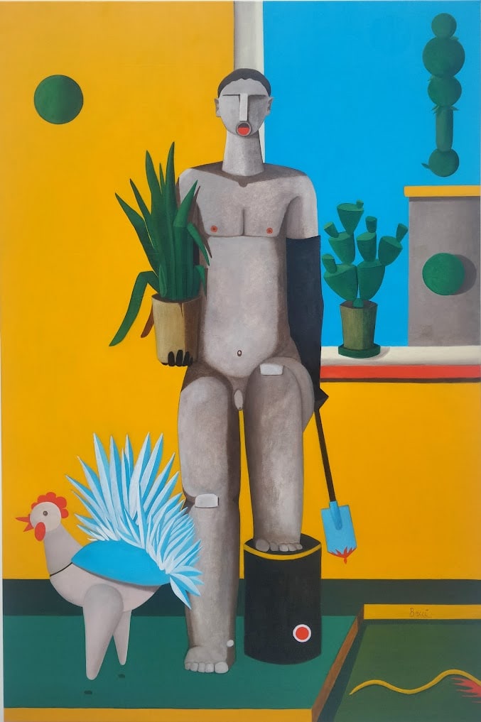 Massimo’s art often features playful elements, generous forms, retro atmospheres, and symbolic objects, all infused with a touch of humor. These motifs create engaging narratives that invite viewers to explore both the visual and deeper meaning behind each piece.