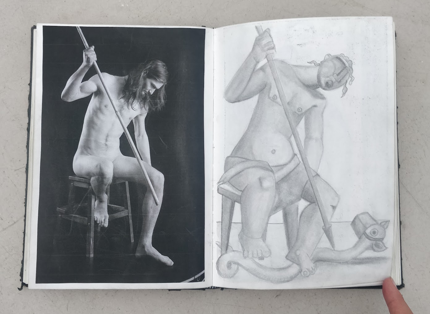 It depends. The time it takes to make a painting always depend on how you start the painting. It depends on the base; if I put a dry or greasy base, if I want it to dry or if I mix it with other colors. A painting can take a month or years to make. But, for example, I can make an acrylic painting in one day. Drawings take a few minutes, especially if I work on a model, you don’t want him to get a cramp. The one that took me the longest is “The Gardener”. I started in 2018 and just finished it now, in 2024. I thought again and reworked it so many times. You have to know when to say stop – and I said it 3 times with this one – but you also shouldn’t be afraid of re-working a painting either. I consider it finished when it is signed. Well, again, it is not always the case, for example, “The Bedbug” still in progressed was signed but at the end I realised I must improve it so I worked on it even if it was signed.