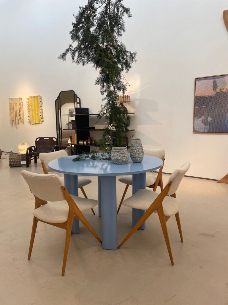 Made by the French designer Gérard Guermonprez, this set of four chairs with a compass base in solid beech have adjustable backrests and have been fully refurbished with vintage burlap. This wood bring your interior a touch of rusting charm and durability. On the other hand, the vintage burlap seats creates a cohesive blend of classic and timeless look in you space. Gérard Guermonprez was born in 1933 and was trained at the Boulle School in Paris. He gained recognition for his series of light oak furniture with black lacquered metal bases exhibited at the Salon des arts ménagers in 1954. Those chairs fit perfectly with a modern round table, such as presented here by Nordal, contemporary design.