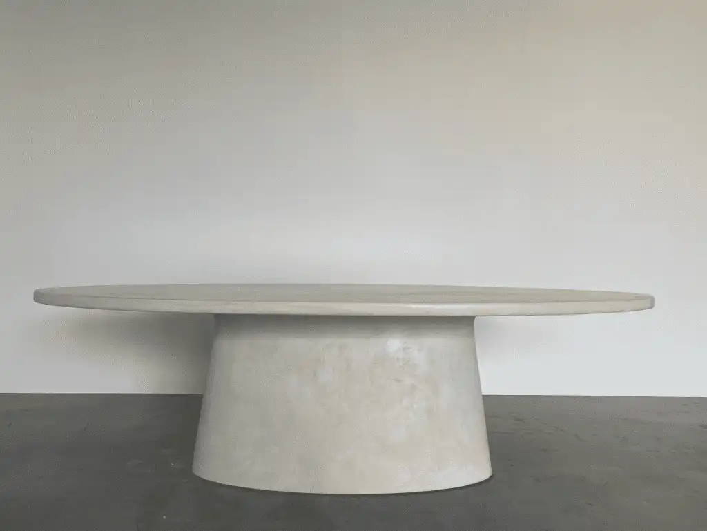 Nestor & Rotsen is a Belgian trade which uses natural elements and artisanal techniques. They use the marble powder for their unique tables « Franklin Camber Oval 2022 » in organic shapes. This impressive piece is characterised by its minimalist simplicity. Colours Samples available (about 20 colours are possible) at the Gallery