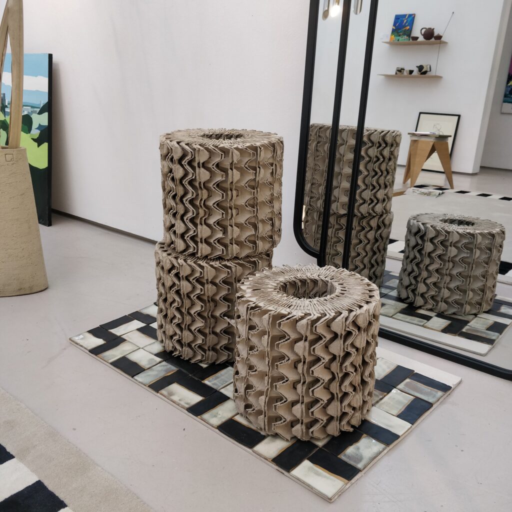 Stool made from egg cartons. Yoann Picard choose to reutilize materials from our everyday-life to create new ones and respond to a range of current issues. In today’s society with its ecological problems, we must ask ourselves the question of the material we use. Are we really obliged to produce new material for each new object?
